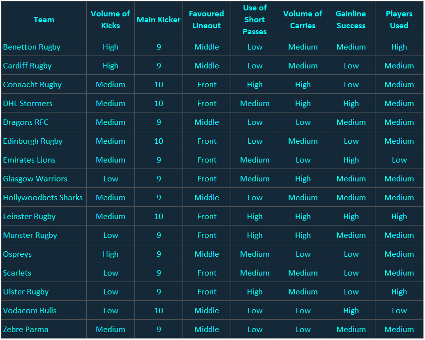 How much do they rotate? What is their favourite lineout option? Do they prefer to kick, carry, or pass? Here we take a look at the data and attempt to de-code the game-plan of all 16 teams.